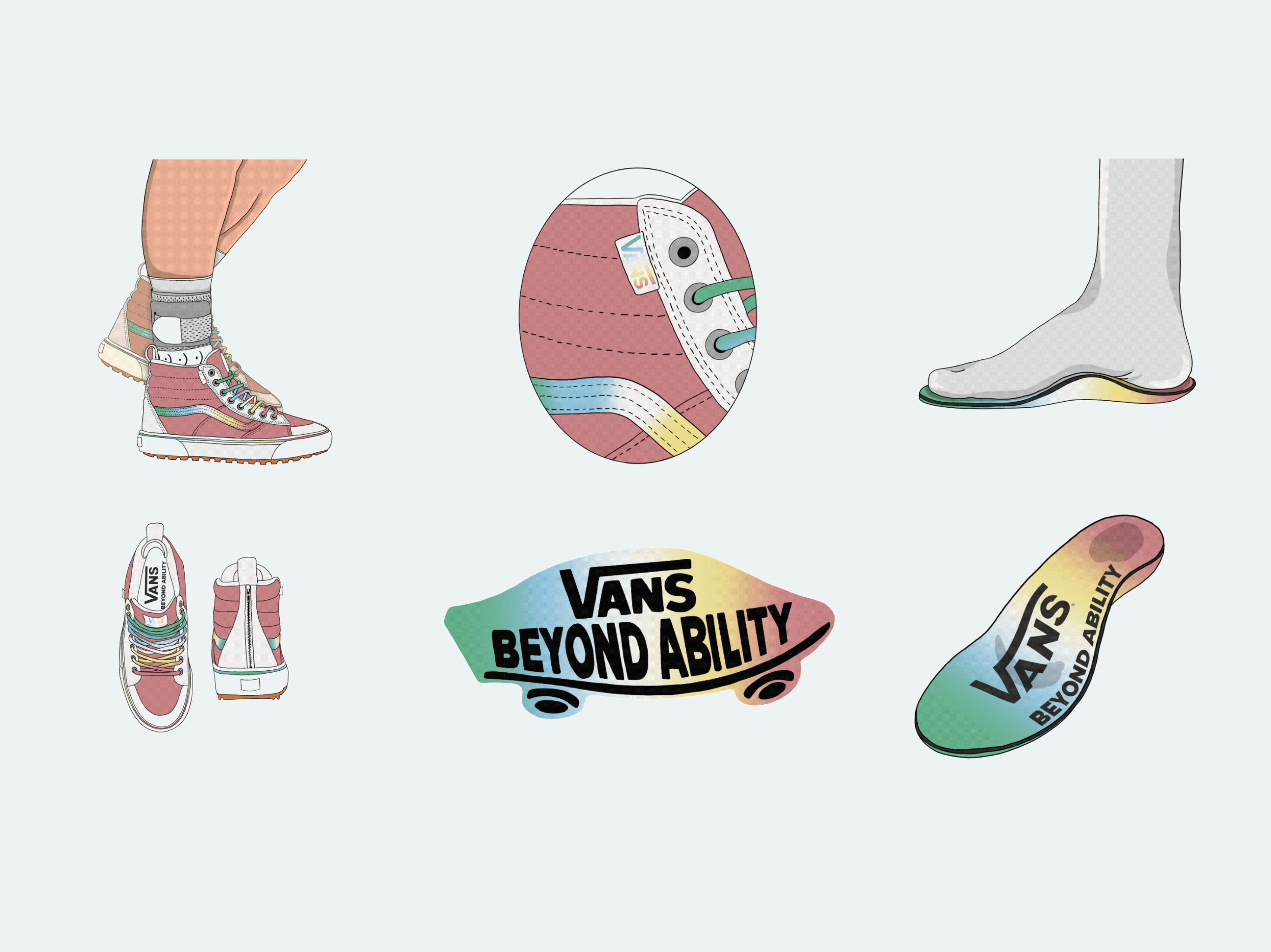 Jasper has always loved photography—the way a single frame can tell a story, capture an experience, or challenge the way people see the world. However for Jasper, self-expression has often come with limitations. Living with Ehlers-Danlos Syndrome, they rely on a medical brace for stability, yet finding shoes that accommodate their needs without sacrificing personal style has been a constant struggle. The shoes that fit often feel clinical and uninspired, while the ones that reflect their edgy, artistic aesthetic leave them in pain after hours of wear.That’s where Beyond Ability comes in.More than just a product line, Beyond Ability is a statement of empowerment, redefining what inclusive design can look like within the Vans brand. When I set out to design this project, I wanted to do more than create a new product; I wanted to tell a story. As a designer, I believe storytelling is one of the most powerful ways to spark change, to amplify voices, and to bring overlooked experiences into the spotlight. Beyond Ability isn’t just about adaptive footwear; it’s about reimagining what inclusion looks like in fashion, proving that accessibility and style should never be at odds. Jasper’s story became the foundation of this project. Their journey—navigating self-expression, comfort, and the need for functional design—led to the creation of a Vans collection that embraces everyone. With brace-compatible fits, customizable support, and accessible closures, Beyond Ability empowers those who, like Jasper, have spent years searching for shoes that feel like them.This project envisions a world where no one has to choose between comfort and self-expression, where design isn’t an afterthought but a means of connection and representation. Because at its core, Beyond Ability is more than just footwear, it’s a movement, proving that true creativity knows no limits.