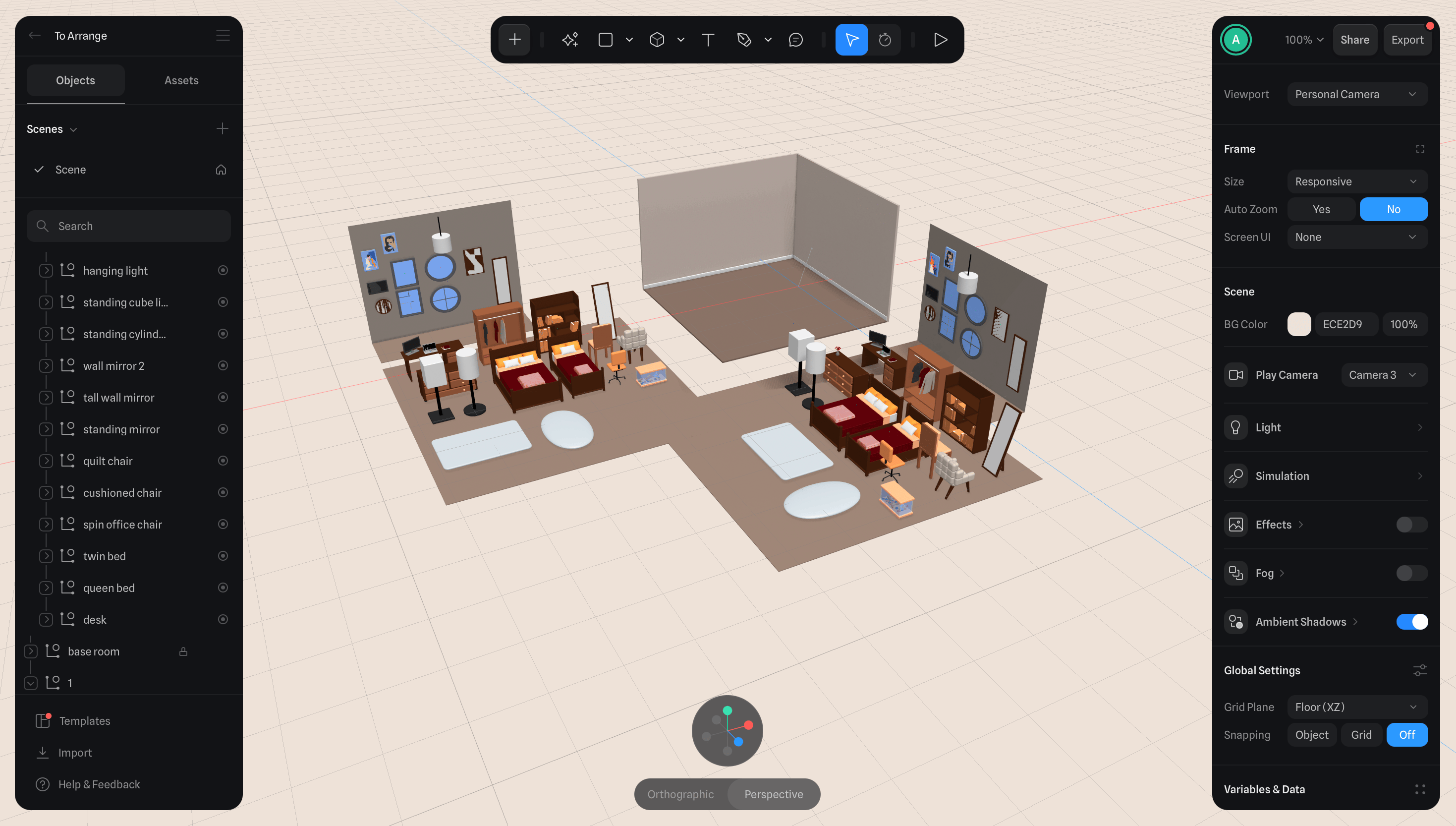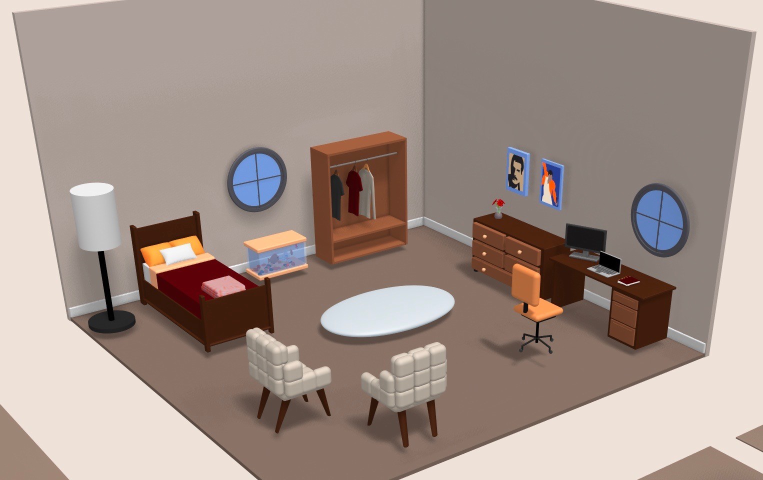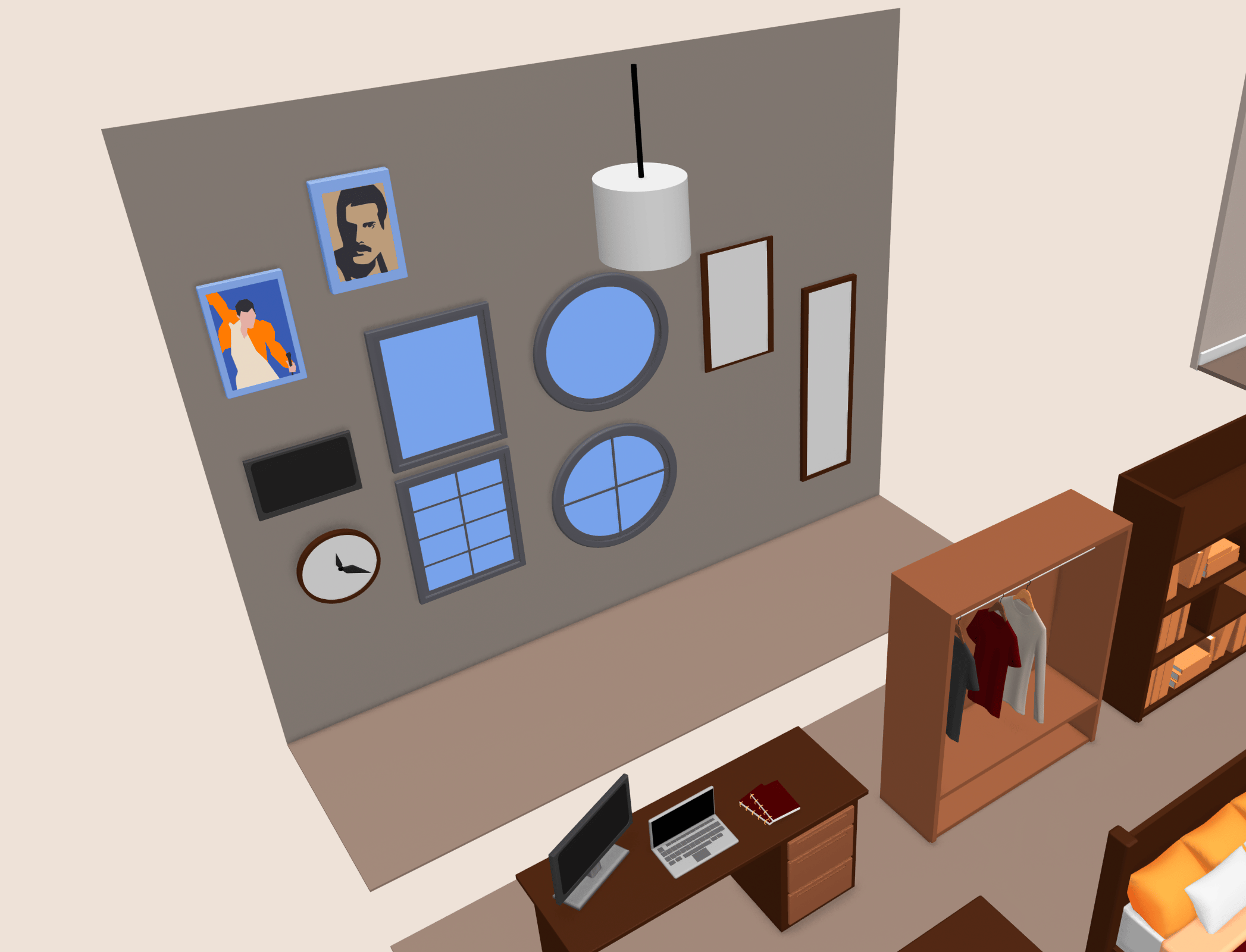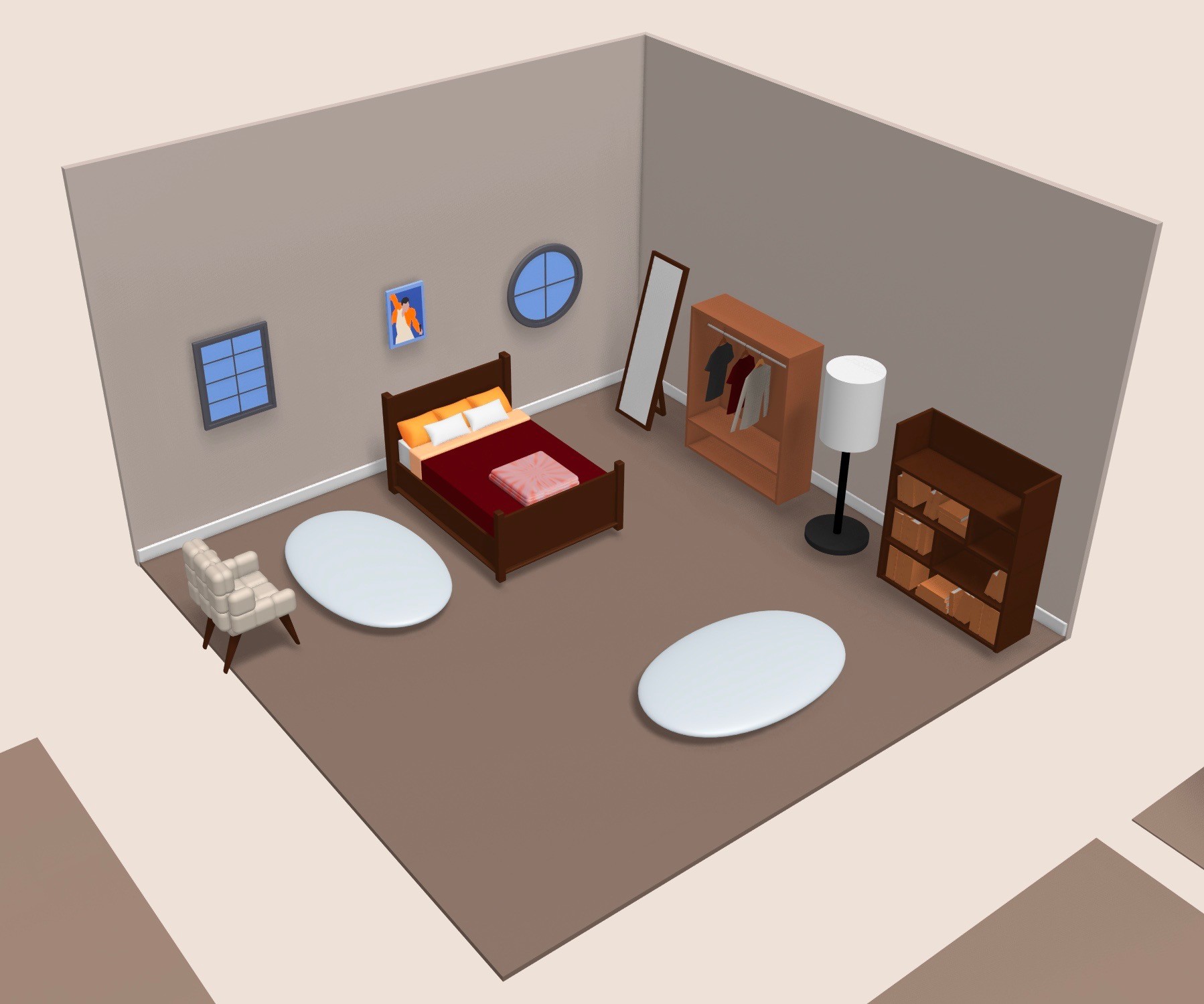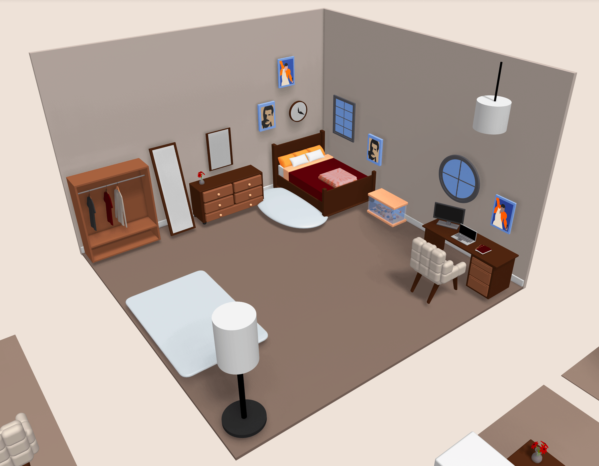 For this project, I 3D modeled a collection of everyday bedroom objects, such as furniture, décor, and other personal items. I then created an interactive environment where viewers can drag and position these elements to design their own space. By transforming arrangement into a participatory act, the work shifts authorship from artist onto the audience. Each configuration becomes a quiet self-portrait, revealing different habits and personality through decision-making. This project explores arrangement as a form of storytelling. What we choose to display reflects how we construct and show our identity.
